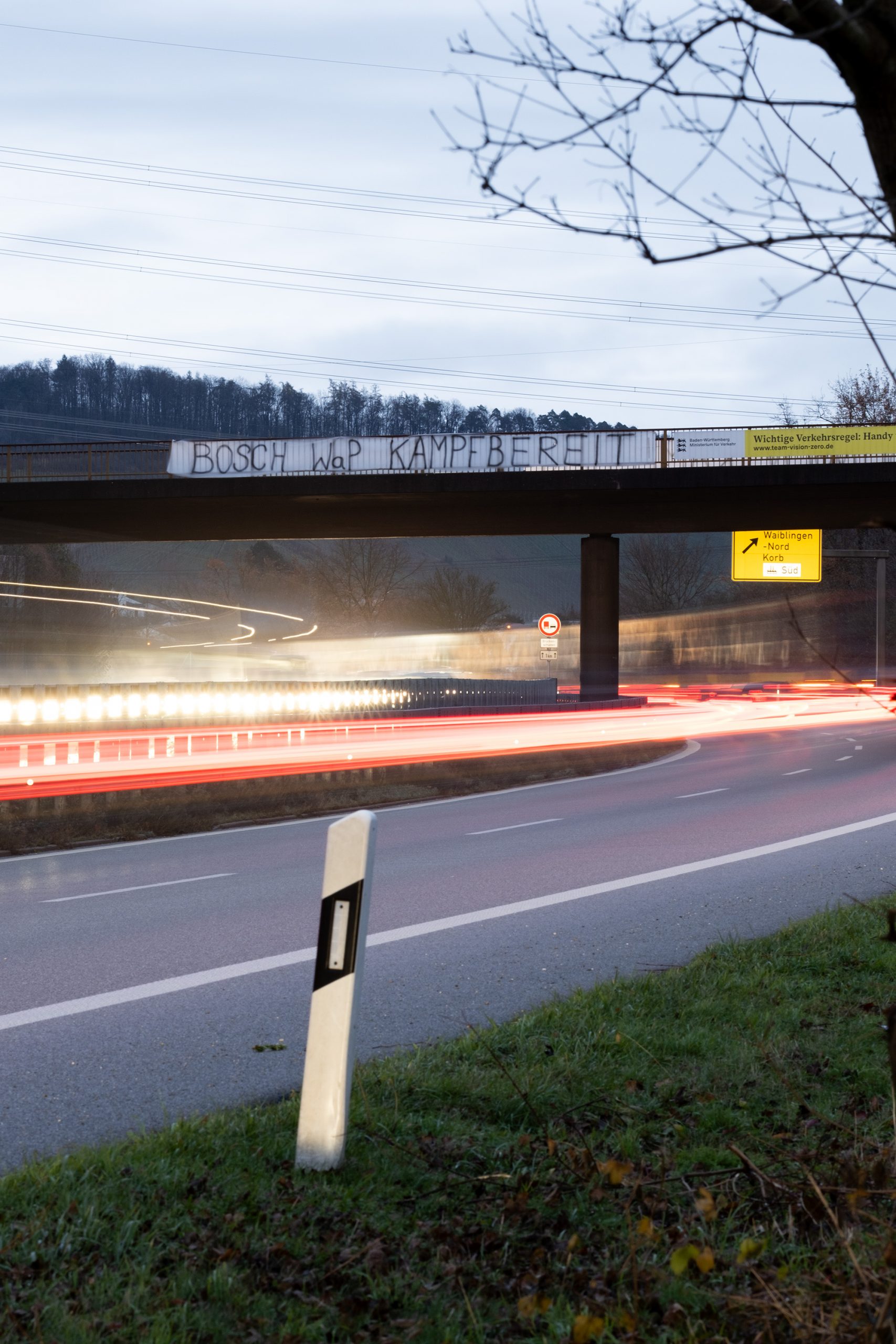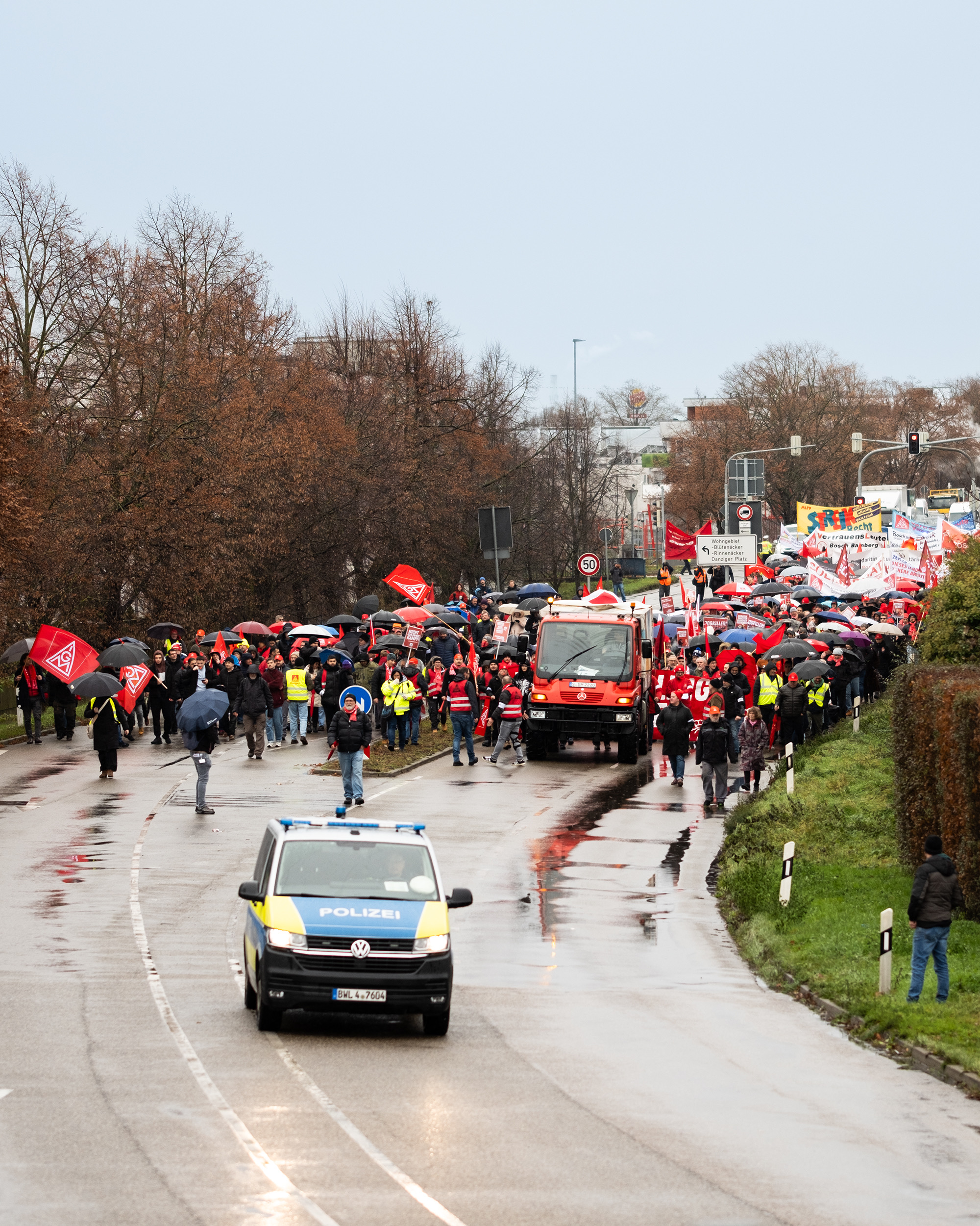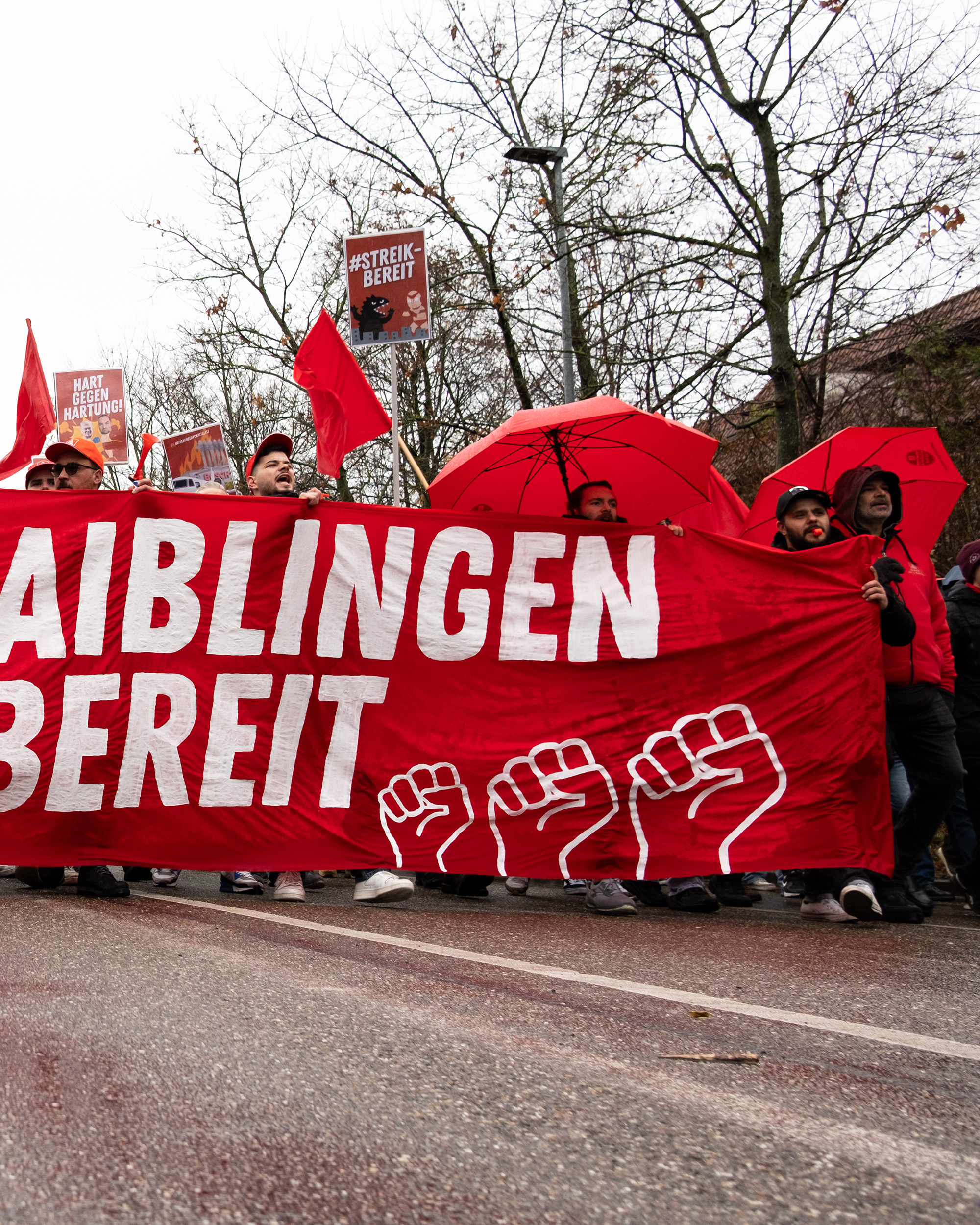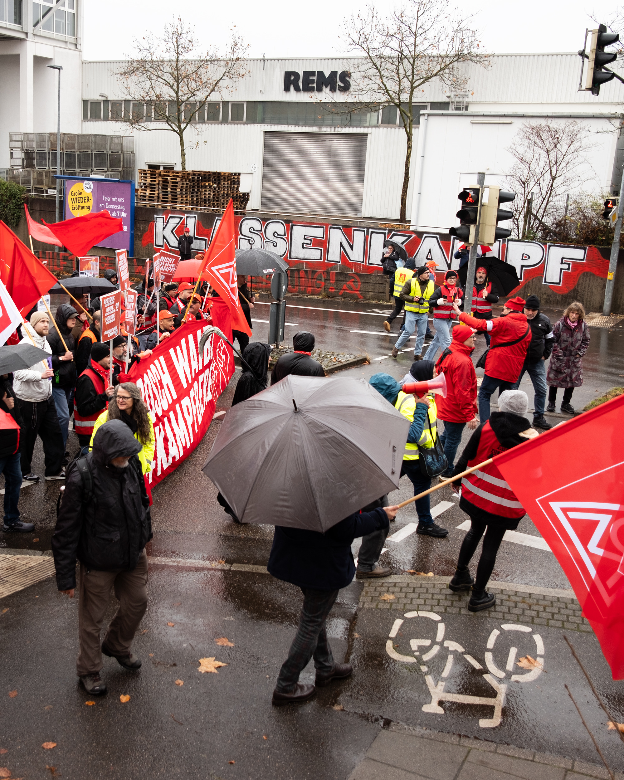 Richard: Natürlich werden wir nichts allein in Verhandlungen zwischen Betriebsrat und Geschäftsführung hinter verschlossenen Türen erreichen. Bisher wurde zum Beispiel jede Verhandlungsrunde durch eine Aktion auf dem Werkgelände begleitet. Der vorläufige Höhepunkt war eine Demo unserer Gewerkschaft, der IG Metall, während der eigentlichen Arbeitszeit am 24.November durch Waiblingen. Wir hatten mit einigen hundert Teilnehmern gerechnet. Am Ende waren es dann fast 2.000! Darunter auch zahlreiche Delegationen aus den Betrieben der Region, aber auch aus entfernteren Bosch Standorten wie Hildesheim. So viel Solidarität tut gut, darf uns aber nicht darüber hinwegtäuschen mit einer Demo allein unsere Ziele noch lange nicht erreicht sind.