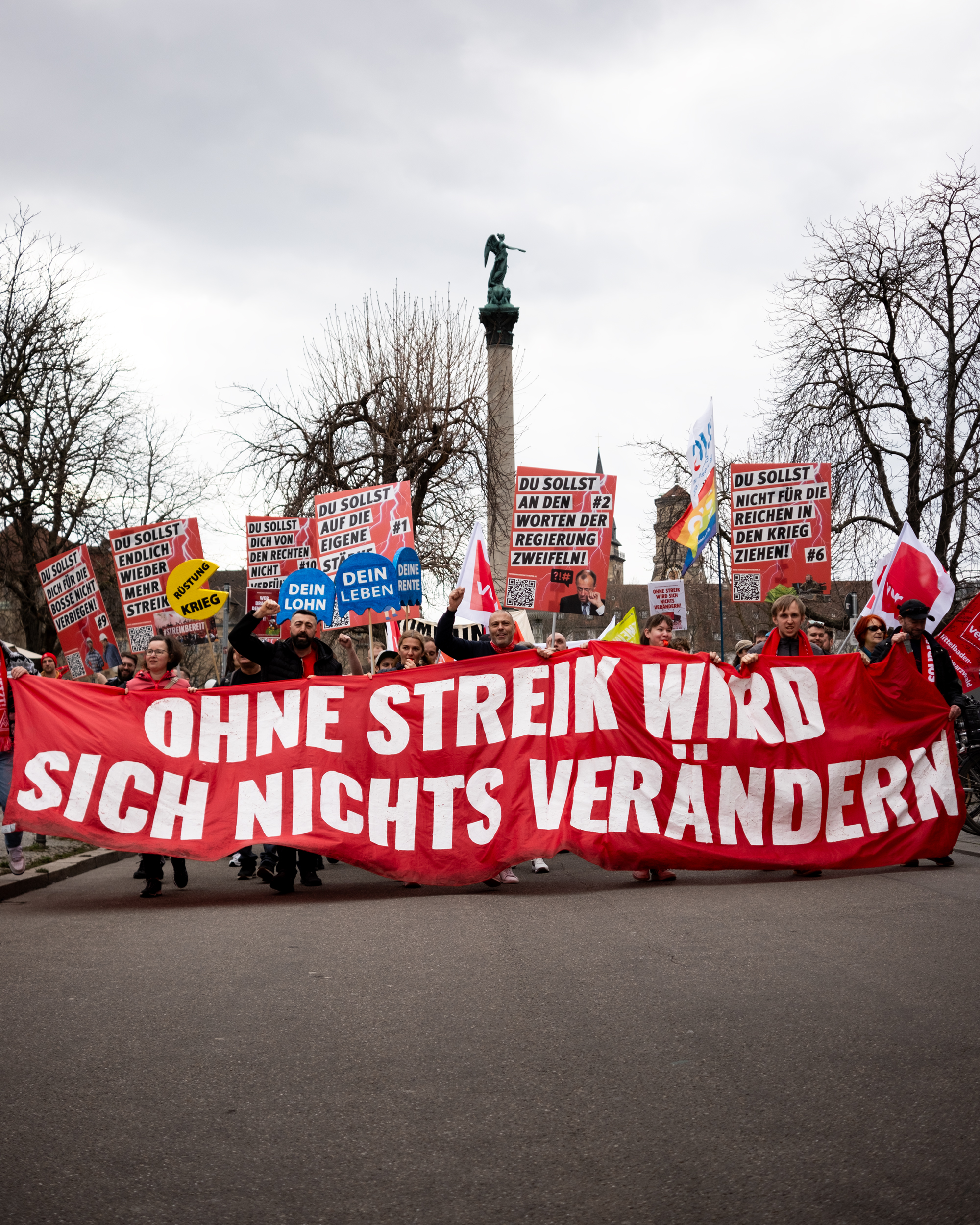 Am vergangenen Samstag nahmen in Stuttgart in der Spitze bis zu 3.000 Gewerkschafter:innen an einer Kundgebung und einem anschließenden Demonstrationszug von IG Metall, Verdi und DGB teil. Erfreulicherweise deutlich mehr als zunächst von uns befürchtet, aber angesichts der politischen und betrieblichen Lage zu wenig. Es sieht leider so aus, als hätten nicht wenige das Vertrauen in ihre Gewerkschaften verloren.
